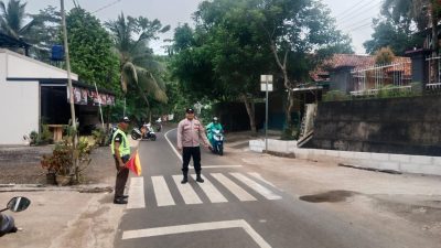 Polisi Sukadana Sigap Bantu Anak Sekolah Menyebrang, Wujudkan Rasa Aman di Pagi Hari Info Sukadana-…